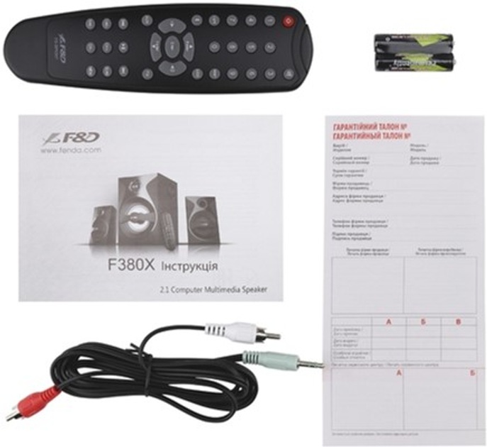 F&D F380Х — настільна акустична система з гарною якістю звучання. Модель оснащено вбудованим USB-портом, картридером і Bluetooth-інтерфейсом V4.0 для відтворення звуку з зовнішніх джерел, а також вбудованим FM-приймачем із пам'яттю до 100 станцій. Корпус колонок виготовлено з пластику, а сабвуфер із товстого МДФ, що дасть змогу не турбуватися про подряпини. Висока якість, класичний стиль і безпрецедентно доступна ціна роблять F&D F380X справжнім фаворитом.