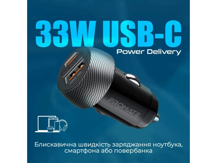 Бренд - Promate;Особливості - Захист від короткого замикання, Захист від перегріву, Захист від перезарядки, Захист від перенапруги; Матеріал корпусу - Пластик; Колір - Чорний; швидкої зарядки - Так; Потужність, W - 30W; Габарити - 20x70x47 мм; Вес, г - 60 г;