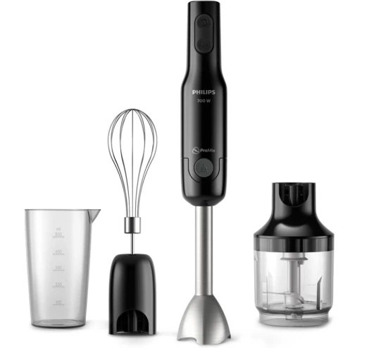 Комплект поставки включає компактний подрібнювач, ідеальний для подрібнення горіхів, зелені та інших дрібних інгредієнтів. Також у комплекті йде одиночний вінчик, який підходить для збивання яєць, кремів та інших сумішей.