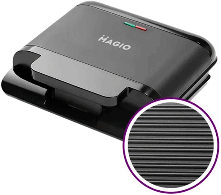 Бутербродниця MG-378 володіє всіма необхідними функціями для того, щоб швидко приготувати смачні та поживні сендвічі. Одночасно в ній можна випікати відразу по 4 сендвічі, краї яких щільно спаюють борти форм, надійно замикаючи начинку всередині. Корпус виготовлений із висококласного термостійкого пластику жовтого кольору. Тип листа - підсмажений сендвіч. Нагрівальний елемент потужністю 750 Вт забезпечить швидке і рівномірне нагрівання двох робочих поверхонь з керамічним покриттям. Бутербродниці Magio дуже зручні у користуванні, сендвічі не пригорають і легко витягуються. Завдяки компактним розмірам та фіксатору бутербродницю зручно зберігати. На кришці є світлові індикатори живлення та готовності до роботи, що полегшує контроль процесу приготування.