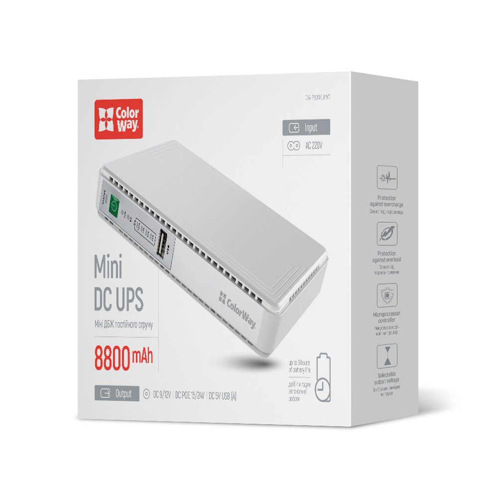 Міні ДБЖ ColorWay – ідеальний вибір для забезпечення безперебійного живлення ваших важливих пристроїв, таких як роутери, модеми, відеокамери та інші девайси. Компактний, але потужний, цей пристрій гарантує стабільне з'єднання з інтернетом та безпеку навіть під час відключення основного живлення.
