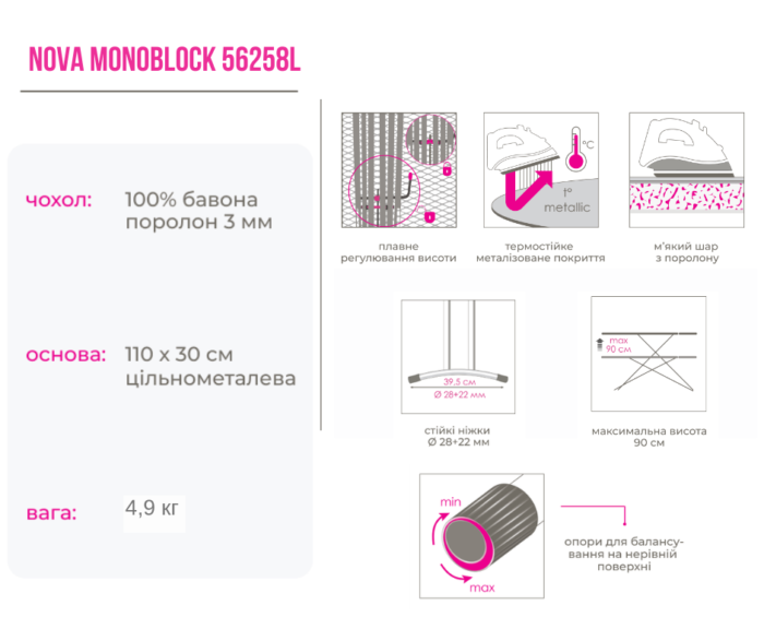 Розмір у складеному стані: 141 х 31 х 5,5 см