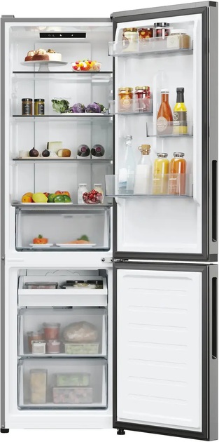 Гарантія відсутності інею та неприємних запахів Система Total No Frost Circle Fresh дозволяє вашим продуктам зберігати свій первісний смак, аромат та текстуру. Інноваційна система рівномірного розподілу температури та бічний потік повітря забезпечать відсутність інею та неприємних запахів у всьому холодильнику. Зона свіжості 0°C Дане відділення має окреме регулювання температури. У режимі 0°C вона ідеально підходить для зберігання делікатних продуктів, таких як риба та м'ясо. І навпаки, коли зона вимкнена, ви отримуєте простір, який зменшує ризик передачі запахів іншим продуктам. 4 полки у холодильнику Чотири поліці забезпечать ідеальний порядок у вашому холодильнику. Висота полиць регулюється, щоб оптимально та зручно розміщувати продукти щодня та відповідно до ваших уподобань. Полички з гнучким розташуванням Максимально використовуйте місткість холодильника завдяки великій варіативності розташування п'яти поличок біля дверей. Завдяки цьому рішенню ви можете змінювати простор приладу, адаптуючи його до типу продуктів, що зберігаються. Полиці з міцного загартованого скла Можна поєднати комфорт, елегантність і безпеку. Безперечно! Завдяки полицям із загартованого скла інтер'єр вашого холодильника не тільки виглядатиме красиво, але й буде легким у догляді та безпечним для ваших продуктів. Покращена видимість - ефективне LED освітлення Рівномірне та потужне світлодіодне освітлення забезпечує ідеальну видимість усередині холодильника. Навіть якщо продукт, який ви шукаєте, ховається десь у кутку, тепер ви зможете легко побачити його. Сховані ручки Елегантний та мінімалістичний дизайн, що поєднує в собі красу, зручність використання та функціональність. Ручки, інтегровані в корпус холодильника, нададуть вашій кухні сучасний вигляд. Три ящики у морозильному відділенні Морозильна камера в холодильнику Candy забезпечена трьома місткими ящиками, найбільша з яких має об'єм 30 літрів. Завдяки цьому ви зможете помістити набагато більше продуктів, ніж раніше, і у вас точно більше не бракуватиме місця на провізію для всієї батьківщини. Все під контролем Керуйте температурою легко та інтуїтивно за допомогою сенсорної панелі керування. Зручно керуйте налаштуваннями як у всьому холодильнику, так і в окремих зонах, наприклад у відділенні для свіжих продуктів 0°C. Холодильник, який зберігає продукти свіжими дуже довго Новий холодильник Candy Fresco створений, щоб забезпечити вашим продуктам тривалий захист їх питних властивостей, смаку та аромату. Завдяки технології Total No Frost Circle Fresh і спеціальному відділенню в холодильнику, де можна встановити температуру до 0°C, ви ніколи більше не викидатимете продукти, а отже, заощаджуватимете гроші. Холодильники серії Fresco 300 мають рівень шуму до 38 дБ. Завдяки майже нечутній роботі вони можуть успішно стати частиною сучасної кухні, об'єднаною з вітальною. Ідеально підходить до інтер'єру вашої кухні.щоб наш холодильник якнайкраще вписувався в інтер'єр вашої кухні: ручка та дверне відділення ідеально поєднуються з лінією кухонної стільниці. Мінімалізм, сучасний дизайн, високоякісні матеріали та практичні рішення - це Candy Fresco: холодильник від найкращих італійських дизайнерів. Дверцята з можливістю перенавішування Розташуйте холодильник саме там, де вам зручно. Завдяки дверцятам, які можна встановлювати з обох б