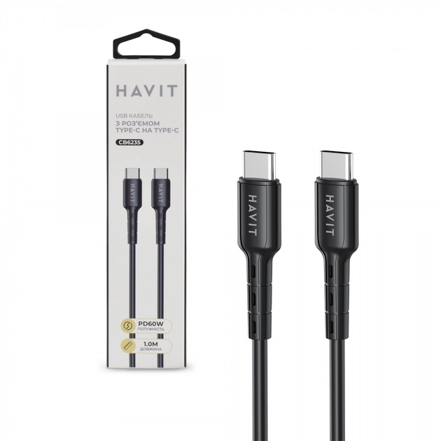 Кабель Type-C на Type-C HAVIT HV-CB6235 PD60W - призначений для швидкої та надійної зарядки, а також передачі даних та синхронізації. Підтримує протокол зарядки 3А PD60W, що дозволяє заряджати MacBook Pro 13" та інші пристрої із сумісним зарядним портом і підтримкою швидкої зарядки. Так як більшість гаджетів зараз використовують зарядні порти типу Type-C то перелік пристроїв для використання дуже великий та різноманітний. Гнучкий та добре спроектований. Довжина кабелю становить 1 метр.