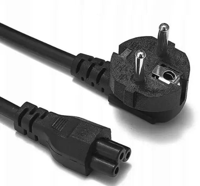 Мережевий кабель живлення (мікі маус) оснащений стандартною євровилкою із заземленням з одного боку, а з іншого 3 пін роз'ємом.