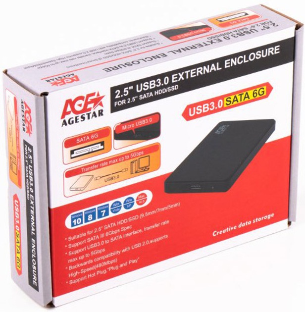 Зовнішній корпус має безгвинтову конструкцію, яка дає змогу швидко та легко підключати SATA HDD/SSD і передавати інформацію через інтерфейс USB 3.0