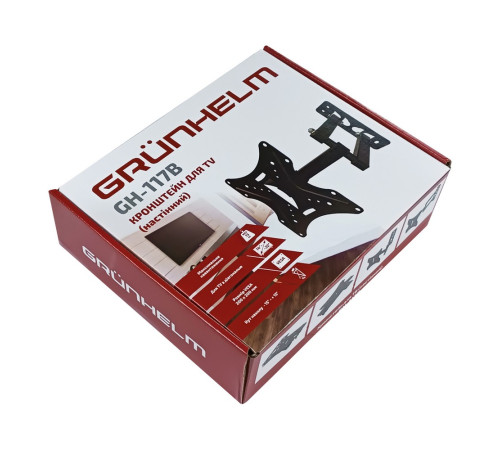 Кронштейн для телевізора GH-117B Grunhelm - підходить для телевізорів діагоналлю від 14 до 32 дюймів з максимальним навантаженням 25 кг - це універсальне кріплення, яке дозволяє встановити телевізор на стіну в будь-якому приміщенні. Кронштейн виконаний із міцного металу, що забезпечує надійність та довговічність його роботи. Має можливість повороту по горизонталі на ±90° та регулювання нахилу у ±15°.