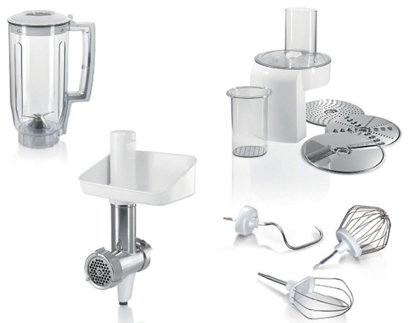 - шатківниця з 3 дисками із нержавіючої сталі: двостороння терка (груба/дрібна), двосторонній диск для шаткування (3мм/1мм), терка для сиру, горіхів, шоколаду