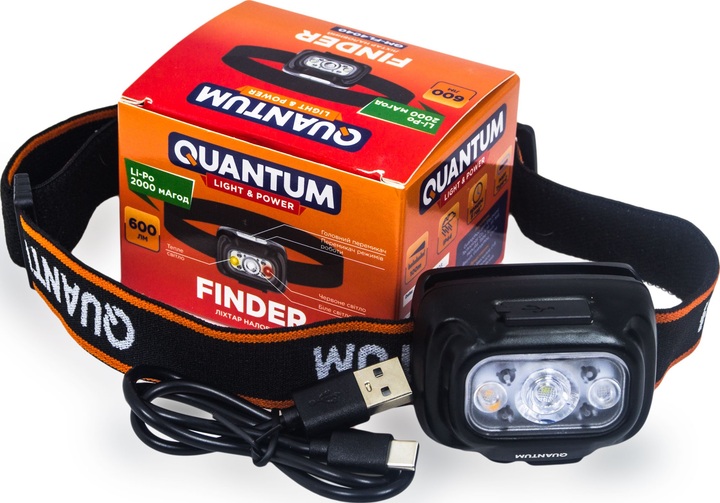 Налобний ліхтар QM-FL4040 Finder – це ідеальний вибір для подорожей, кемпінгу, рибальства й інших видів активного відпочинку, ремонту, автомайстерні. Матеріал корпусу ліхтаря QM-FL4040 Finder - алюмінієвий сплав та пластик. Яскраві світлодіоди дуже ефективні та довговічні. В ліхтарі використовуються три кольори світла з 7-а режимами освітлення: холодне LED світло мінімального, середнього та максимального рівня, тепле LED світло мінімального та максимального рівня, червоне світло та червоне мигаюче. Режими кольору змінюються кнопкою "MODE", а яскравість кнопкою вимикача. LED світло має високу яскравістю та рівномірну світлову пляму. Виріб живиться вбудованим літій-полімерним акумулятором. Наявна індикація рівня заряду вбудованого акумулятора, що вмикається з освітленням та дозволяє контролювати процес заряджання та розряджання: світлодіоди мигають під час заряду та світять при повному заряді. Кожен світлодіод сигналізує в процентному стані ступінь заряду – 25%, 50%, 75%, 100%.