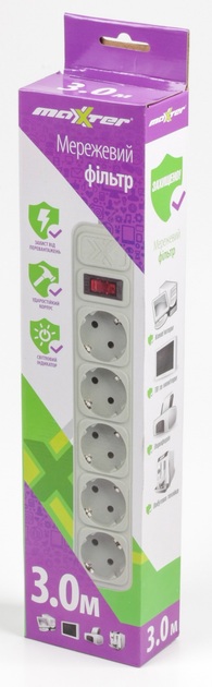 Мережний фільтр SPM5-G-10G від компанії Maxxter призначений для під'єднання широкого спектра побутової та електронної техніки, включно з чайниками й електронагрівачами.