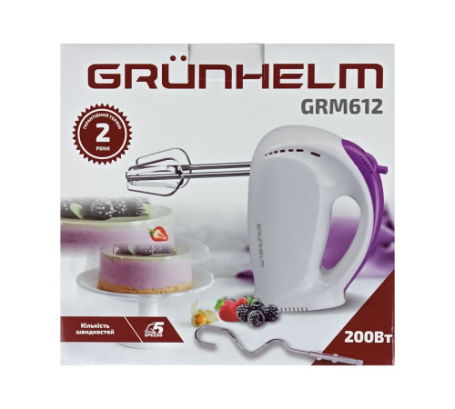 Міксер Grunhelm GRM612 - якщо виникає необхідність добре збити яйця, вершки, замісити рідке тісто, то не обов'язково використовувати потужний кухонний комбайн. З дрібними завданнями легко справиться компактний міксер занурювального типу. Потужність приладу дозволяє добре збивати інгредієнти