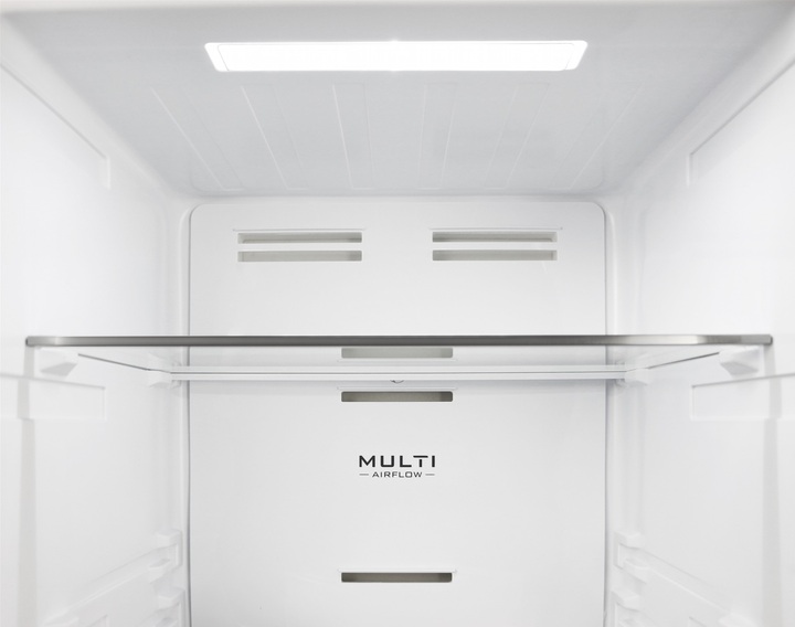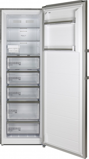 LED-дисплей дозволяє легко керувати всіма функціями пристрою, а електронна система керування забезпечує точність налаштувань. Багатопотокова система заморожування гарантує рівномірний розподіл холоду по всій камері. Морозильник також оснащений лотком для льоду, що робить його ще зручнішим у використанні.