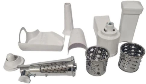 Ви отримаєте не один, а три циліндричних барабани: насадку-тертку, насадку-шатківницю, насадку для дерунів та соковитискач для томатів та ягід.