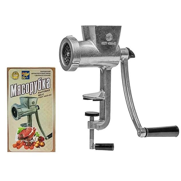 Механічна м'ясорубка виготовлена з алюмінієвого литого корпусу.