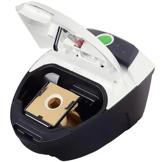 Модель оснащена мішковою системою збору пилу об’ємом 1,5 літра, що дозволяє зручно очищати контейнер без зайвих зусиль. У комплекті йдуть два одноразові мішки та один багаторазовий, тож ви можете обрати оптимальний варіант для себе.