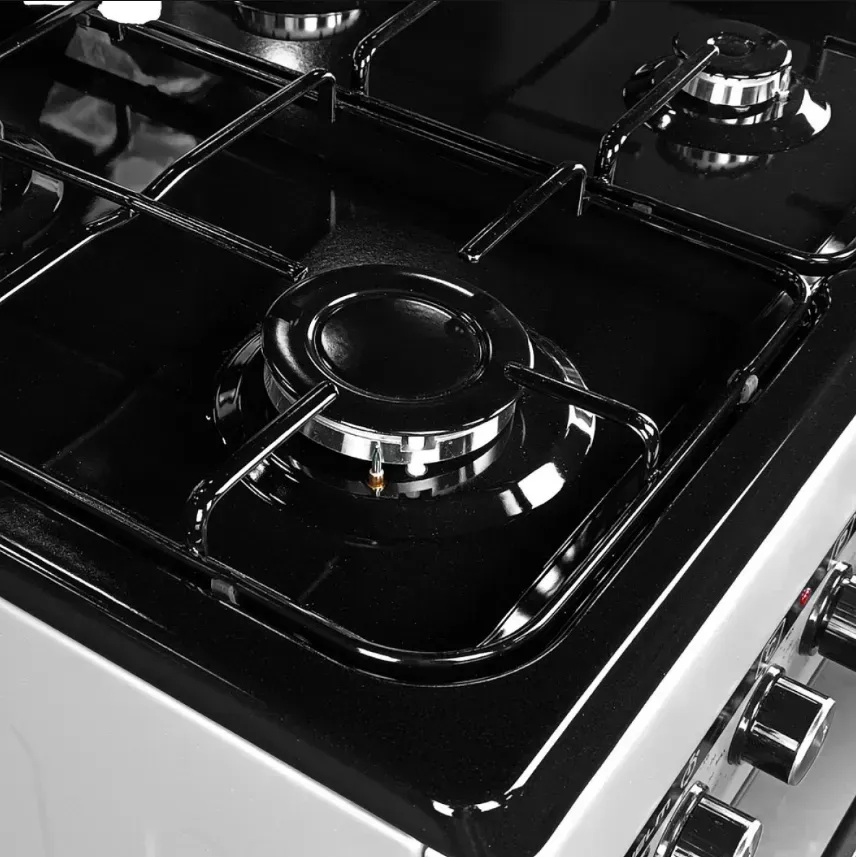 Кухонна плита Grunhelm FG6612G з електричною духовкою та газовою варильною поверхнею — це практичне рішення для тих, хто цінує функціональність, зручність та класичний дизайн. Елегантний чорний корпус зі скляною кришкою та дзеркальними дверцятами духовки гармонійно впишеться в будь-яку кухню. Модель оснащена 4 конфорками, включаючи конфорку WOK для швидкого та рівномірного нагріву. Газ-контроль конфорок гарантує безпеку при експлуатації, а система електрозапалювання в ручках спрощує використання. Містка електрична духовка об'ємом 70 л оснащена механічним таймером, верхнім та нижнім нагрівом, а також функцією конвекції для рівномірного випікання. Додатково передбачений ящик для зберігання посуду, а в комплект входять деко та решітка. Плита Grunhelm FG6612G стане відмінним помічником на вашій кухні — зручна, надійна та продумана до дрібниць.