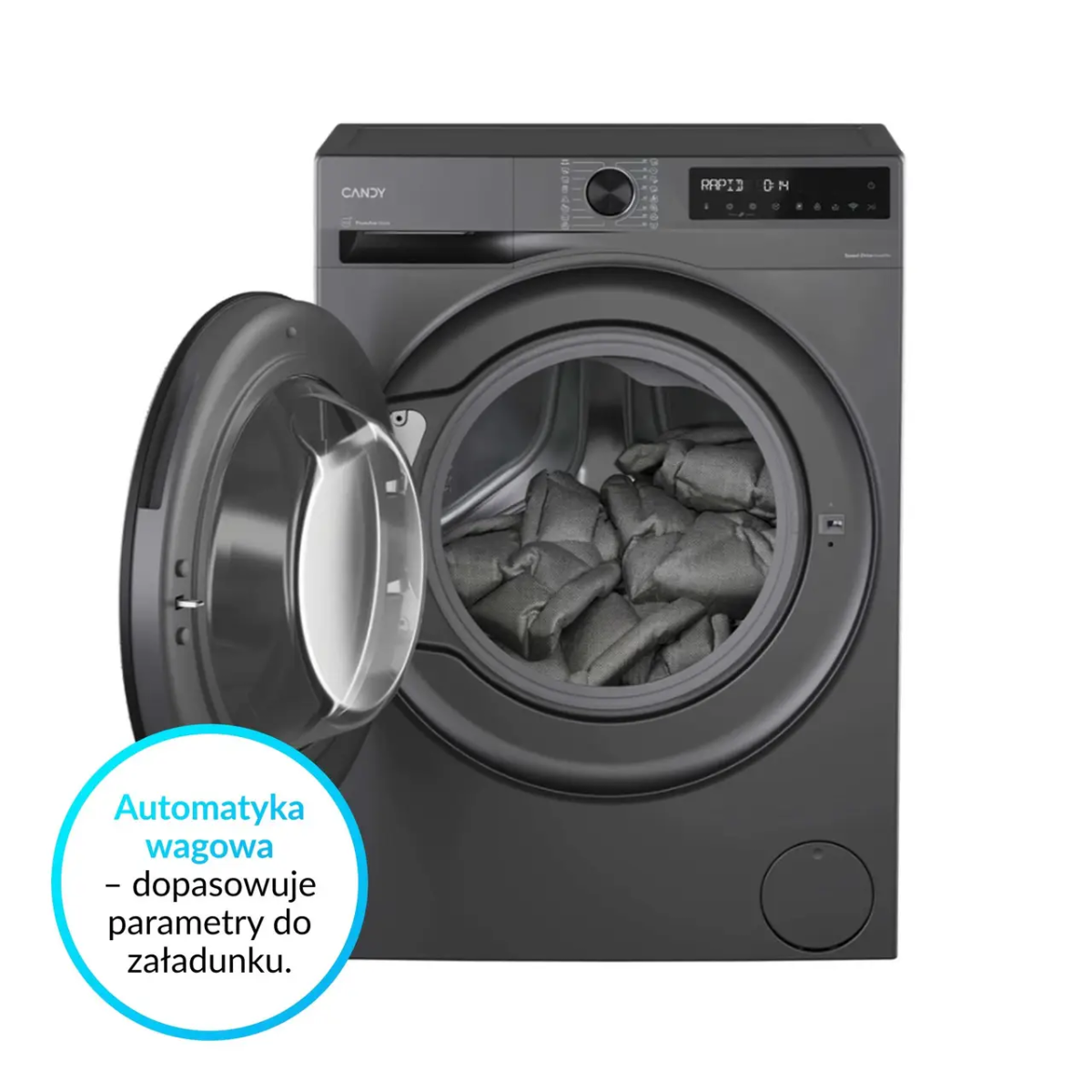 Додаткові функції-автоочищення Candy Smart Spray, барабан Candy Soft Drum, очищення барабана, додаткове полоскання, антибактеріальна функція Candy Clean shield, функція пари, легке прасування, міні прання, можливість скорочення часу прання, захист від зминання, антиалергенне полоскання, інтенсивне прання (виведення плям), зниження вібрації та шуму Candy AI Silent Motion, безщітковий двигун Candy Speed Drive Inverter, старт/пауза, система активації миючого засобу Candy ProActive Wash, вибір ступеня забруднення