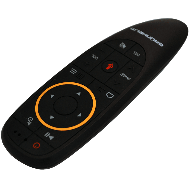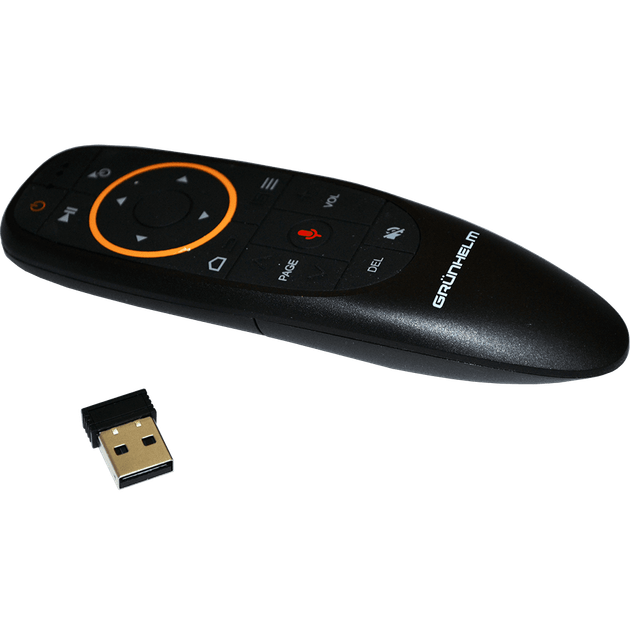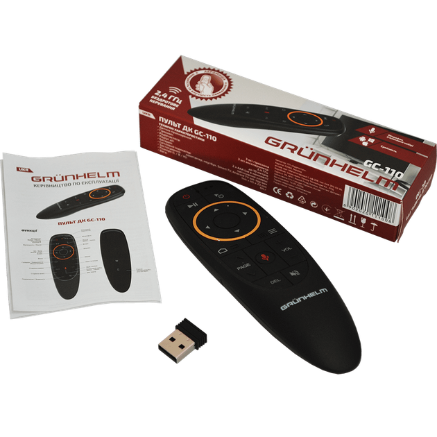 Пульт дистанційного керування GRUNHELM GC-110, крім клавіатури, має мікрофон для голосового набору. Радіус 10 метрів, живлення від батарей ААА