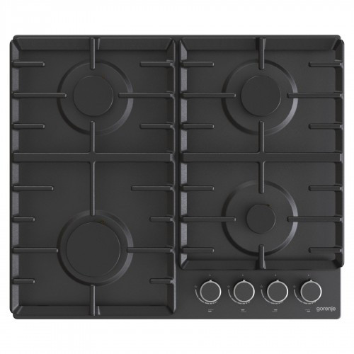 Газова варильна поверхня gorenje G642AB має чавунні грати та керується за допомогою елегантних механічних ручок. Модель має 4 газові конфорки з різними розмірами та потужностями: