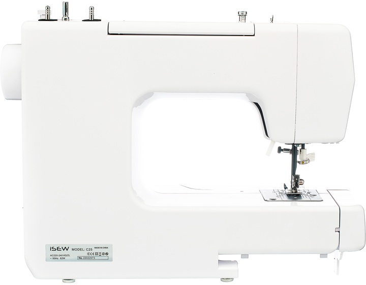 Швейна машина іSew C 25 електромеханічного класу з вертикальною човниковою системою й набором із 25 швейних операцій, серед яких еластичні, оверлокові, потаємні, робочі та декоративні строчки, а також петлею в напівавтоматичному режимі. Варто зазначити, що виробник обладнав машину автоматичним ниткозасилювачем, яскравою світлодіодною підсвіткою зоні шиття, системою швидкої зміни лапки, рукавною консоллю, обрізником нитки й багатьма іншими опціями для комфортного шиття. Посилений транспортер тканини, внутрішній металевий каркас, потужний двигун — усе це дасть змогу не тільки професійно шити, а і працювати в техніці печворк, квілтинг і скрапбукінг.