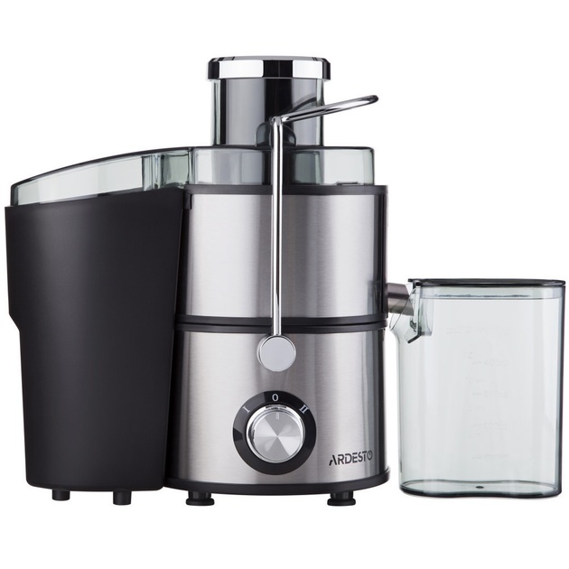 Ardesto JEG-1000 - 1000Вт - соковижималка для приготування соків з фруктів, овочів, зелені та ягід. Потужний мотор і високоефективна терка забезпечує швидке приготування соку з мінімум відходів і сухої маси. Компактні габарити пристрою і продуманий дизайн сприяють простому і швидкому очищенню без зайвих зусиль. Два режиму і реверс. Одцентрованная технологія приготування використовує спеціальну високоефективну терку і сталевий фільтр. Потужність мотора становить 1000 Вт. Для зручності використання, пристрій оснащений двома режимами роботи і функцією реверсу. Якісні матеріали. Соковижималка Ardesto JEG-1000 - 1000Вт має стильний зовнішній вигляд. Над ним працювали італійські дизайнери. Прилад виготовлений з якісного полікарбонату і нержавіючої сталі зі шліфованої текстурою. Таке поєднання підкреслює надійність і вишуканість стилю, який прикрасить будь-який інтер'єр. Крапля-стоп. Для економії часу приготування, соковижималка отримала отвір 65 мм і штовхач для завантаження цілих інгредієнтів, наприклад яблук. Також, передбачено наявність автоматичної системи покидька м'якоті. Є функція капля-стоп і в комплектацію входить 1,5 літровий знімний контейнер. Цієї ємності досить для тривалої роботи соковижималки. Для соку, є спеціальний контейнер з сепаратором піни. Тривалість служби. Всі комплектуючі Ardesto JEG-1000 - 1000Вт розраховані на тривалий термін експлуатації з підвищеним рівнем навантаження. Двигун отримав захист від перегріву, а запобіжна сталева ручка забезпечує запуск тільки після повного складання пристрою. Прогумовані нескользящие ніжки моторного блоку забезпечують надійну фіксацію на столі під час роботи.