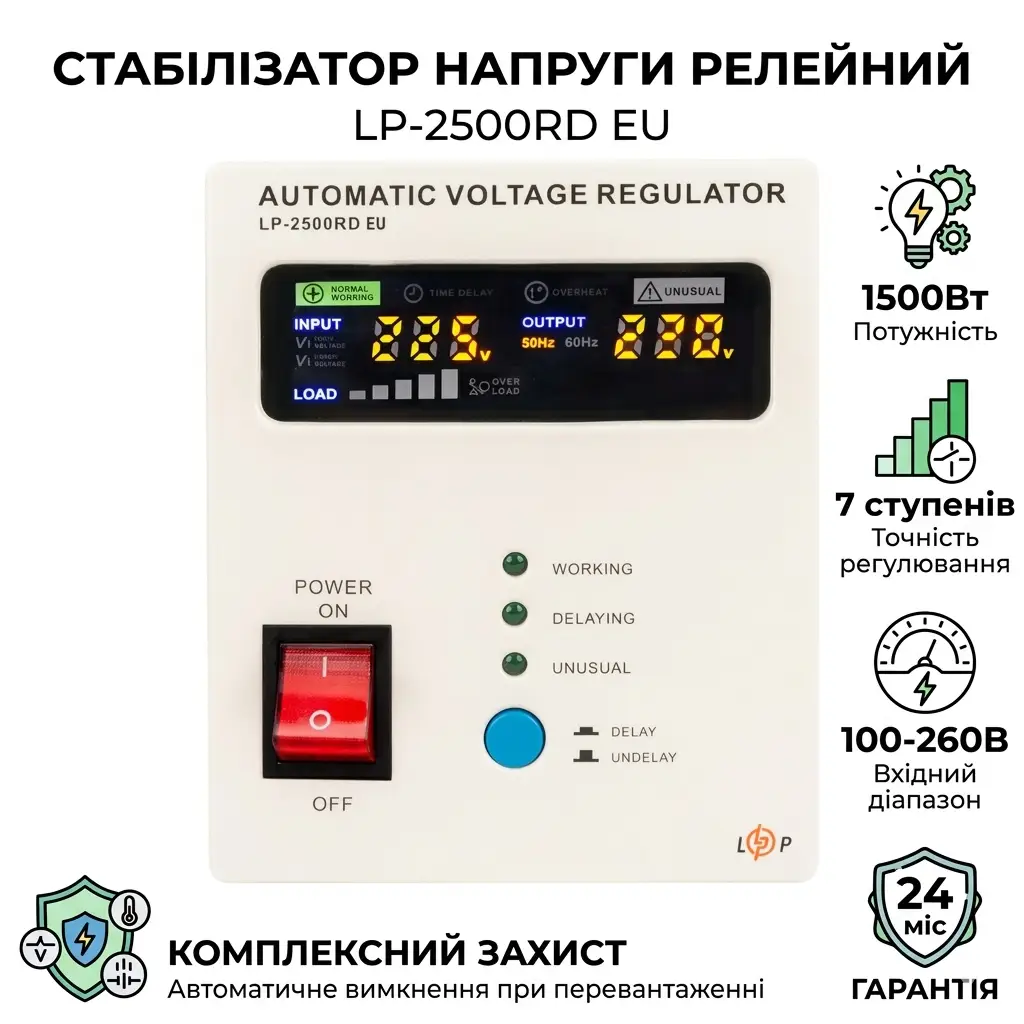 Захист від-Підвищеної напруги, Зниженої напруги, Перевантаження, Короткого замикання