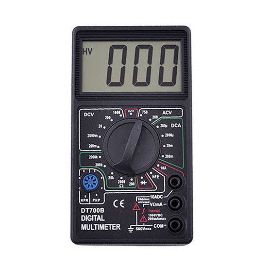 Мультиметр DT700B – компактний, зносостійкий, кишеньковий, використовується для контролю постійної і змінної напруги, постійного струму, опору, перевірки діодів і транзисторів.