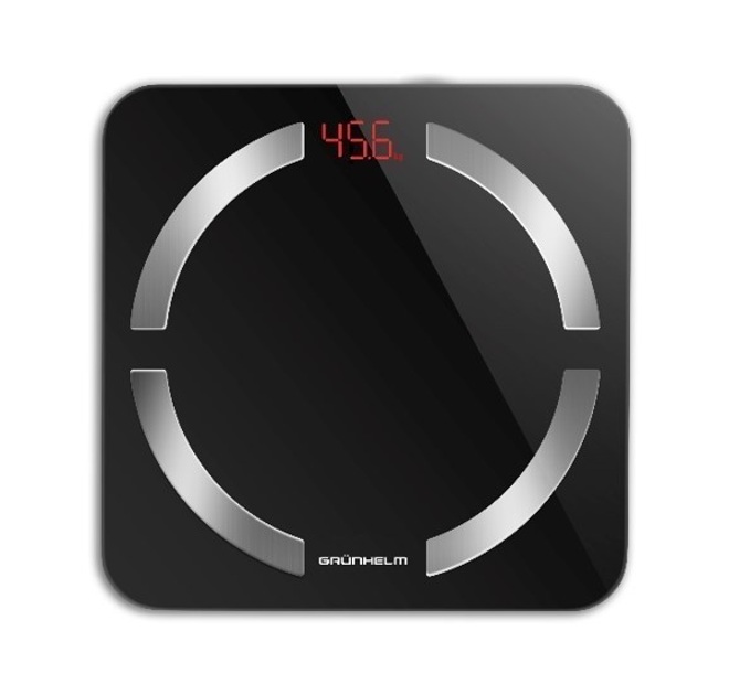 Підлогові ваги GRUNHELM BES-30BFS управляються електронно за допомогою сенсора, всі дані відображаються на дисплеї. Є можливість підключення до Вашого смартфона через Bluetooth. Завдяки біоімпедансного аналізу можна з'ясувати масу тіла, індекс маси тіла, кількість жиру та води, м'язів, кісток, калорій. Панель розміром 30х30 см виготовлена з загартованного скла 5 мм із чотирма металевими пластинами, знизу вставки з ABS пластику. Максимально допустима маса зважування 180 кг, дискретність вимірювання 0.1 кг. Для зручності можна виставити вимір у кілограмах, фунтах, стоунах. Такі додаткові функції, як індикатор перевантаження, низького заряду та автоматичне вимкнення спростять використання ваг.