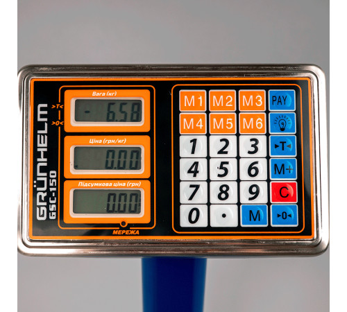 Торгові ваги GSC-300 Grunhelm - зручна та практична модель з калькулятором та межею зважування 50 кг. Відмінний варіант для роботи в магазині, кафе, складах, ринковій торгівлі. Модель працює від мережі чи акумулятора. Ніжки регулюються. Терези виготовлені з нержавіючої сталі. Терезами зручно керувати за допомогою клавіш, вся інформація відображається на ЖК дисплеї. Є функції обнулення ваги, тарування, а також індикатор навантаження та низького заряду батареї.