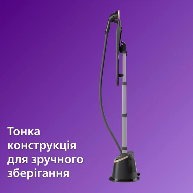 Відпарювач має інноваційну металеву велику підошву та особливу форму передньої частини, що спрощує доступ до таких важкодоступних ділянок, як коміри та ділянки між гудзиками