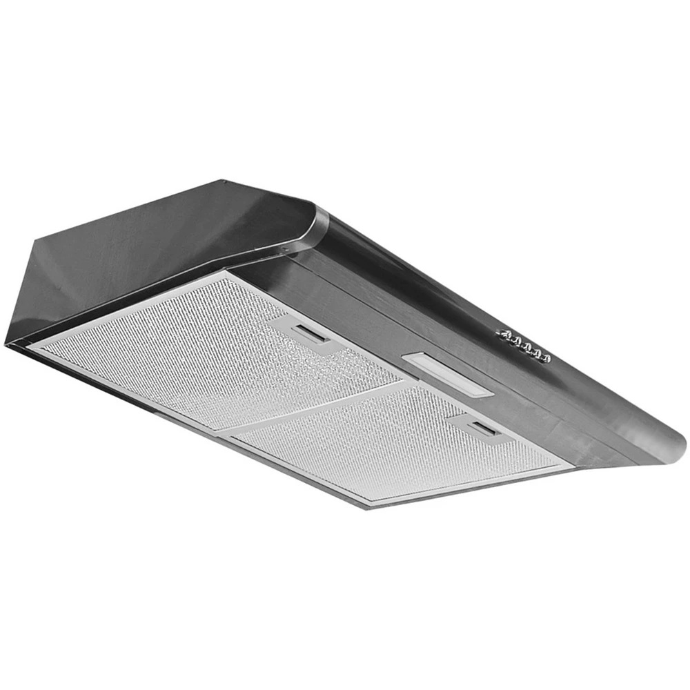 Витяжка GRUNNHELM GVP 220 I - це компактний пристрій для відведення повітря, що прикріплюється на стінку, із простим кнопковим керуванням. Корпус виконаний з нержавіючої сталі, він не схильний до іржі, окислення, має невелику вагу, через що шумність на мінімумі -51 дБ. Потужність двигуна 80 Вт із продуктивністю 400 м³/год. Підсвічування представлене однією лампочкою 2 Вт, загалом споживає витяжка зовсім небагато.