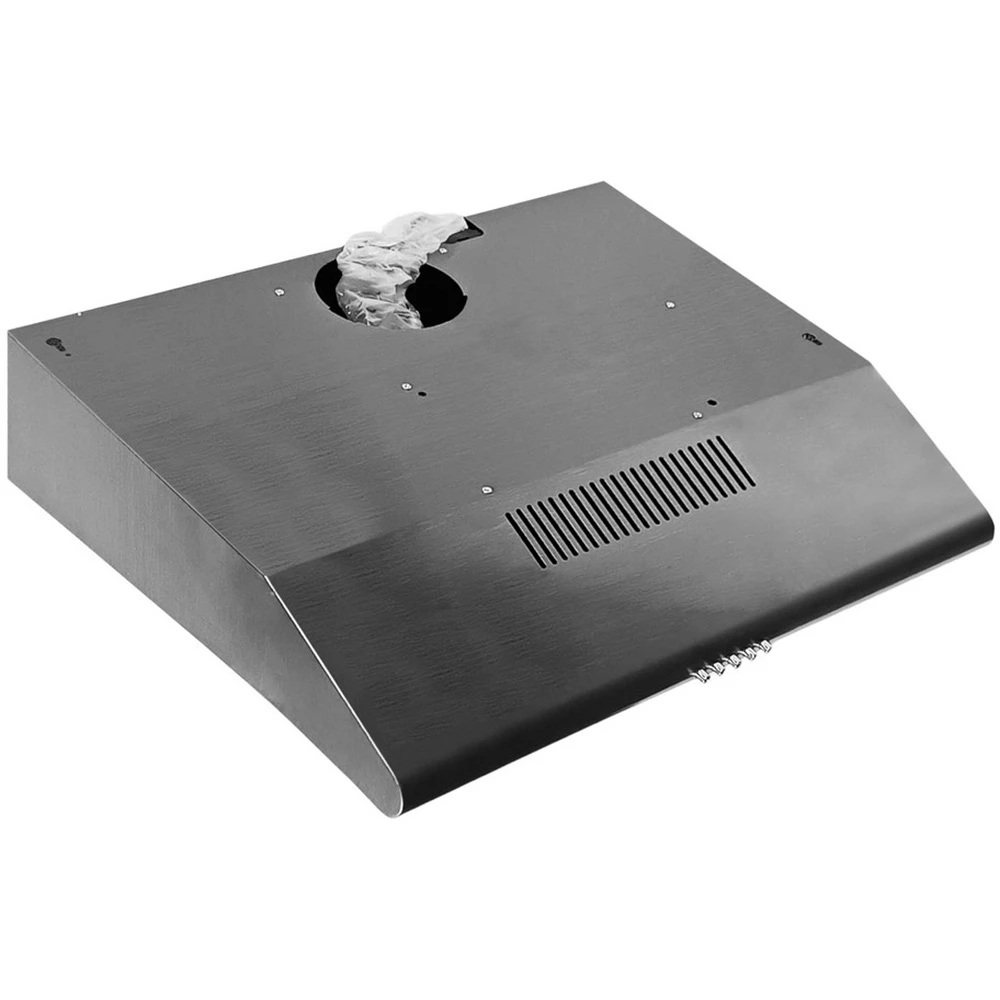 Витяжка GRUNHELM GVP 251 B чорна – це компактний пристрій для відведення повітря, що прикріплюється на стінку, із простим кнопковим керуванням. Корпус виконаний ізольованою сталі, він не схильний до іржі, окислення, має невелику вагу, через шумність на мінімумі-52 дБ. Потужність двигуна 80 Вт із продуктивністю 400 м³/год. Підсвічування представлене однією лампочкою 2 Вт, загалом споживає витяжку зовсім небагато.
