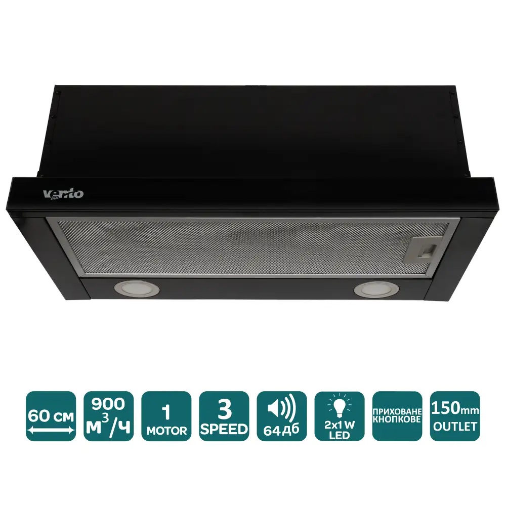 Купити висувну витяжку в кухню GARDA 60 BK (700) LED 2S в брендовому інтернет магазині ТМ VENTOLUX!