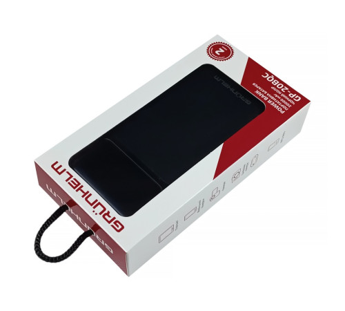 Power Bank - Портативна батарея 20.000 mAh. чорний - GP-20BQC. швидка зарядка 22.5W GRUNHELM — універсальна зарядна батарея. Матеріал корпусу виконаний із якісного пластику. Пристрій оснащений захистом від короткого замикання, швидкою зарядкою та високоефективною конверсійною системою. Дозволяє підключати ваш пристрій - планшет, мобільний телефон, камера, цифрова камера, ігрова приставка, MP3/MP4/